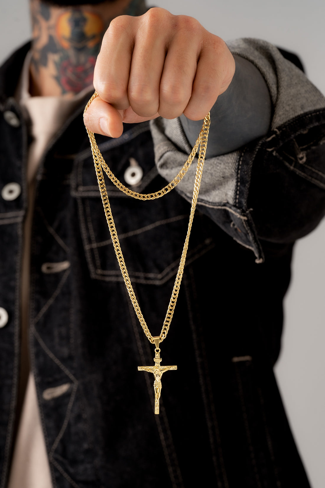Cadena Cubana Continua 4mm + Dije cruz buen pastor