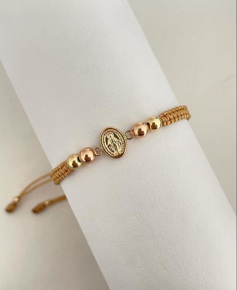 Pulsera virgen milagrosa con balines #4 y canutillos