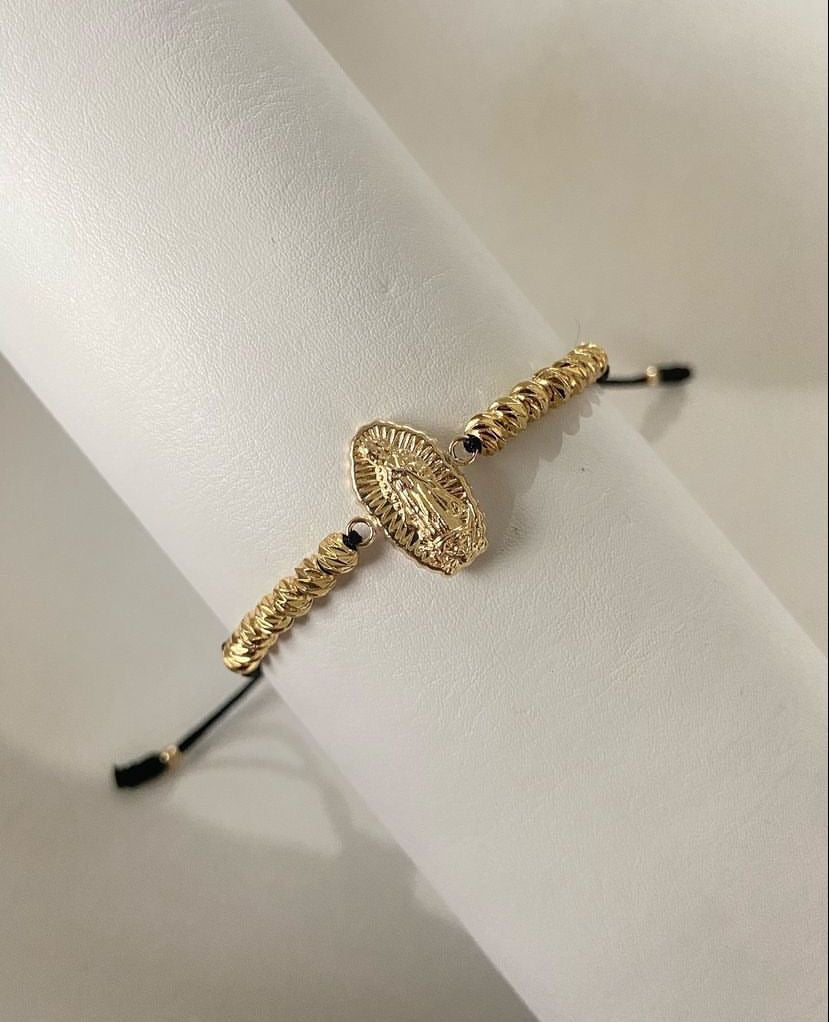 Pulsera Virgen Tallada con balines #4 diamantados completa