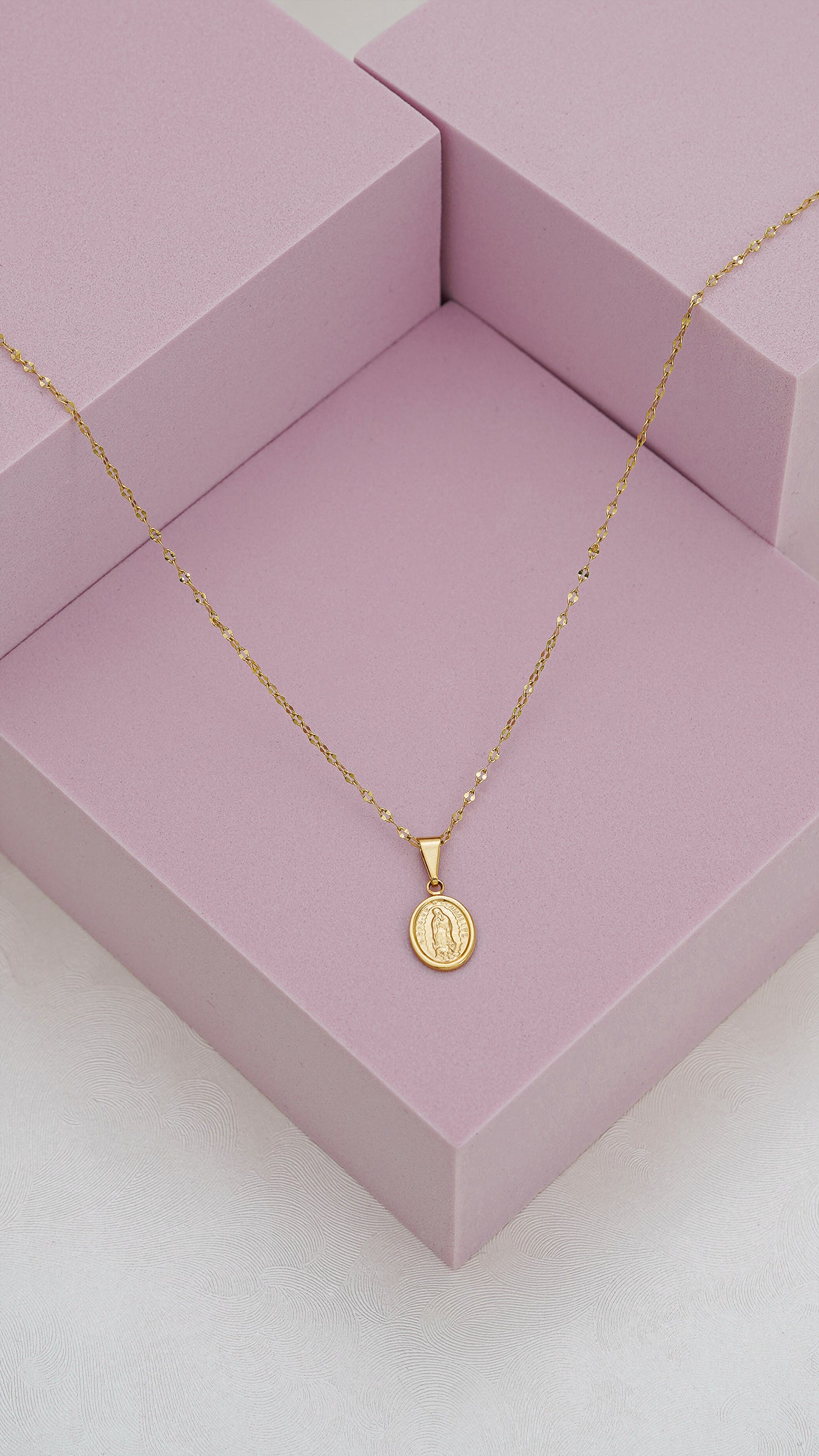 Cadena espejo cuadrada ( 45cms ) + Dije Guadalupe pequeño